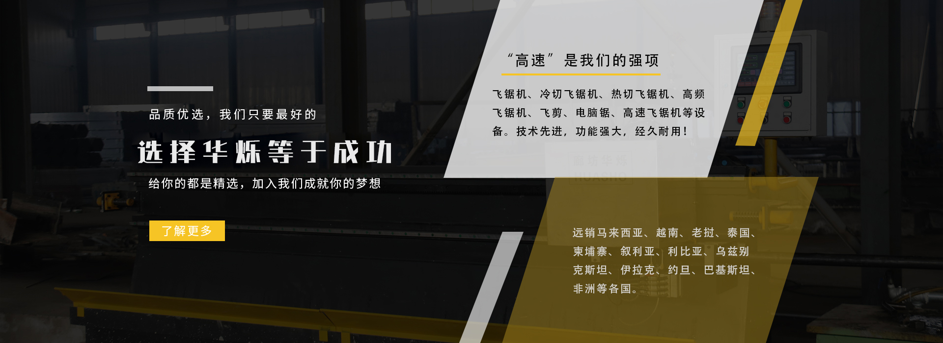 廊坊華爍自動化設備有限公司以誠信交朋友、服務求生存、技術求發展為宗旨,多年來專注研制、生產、銷售高頻焊管生產線輔機——數控高頻冷切飛鋸機為主線,為國內外客戶提供高品質的需求產品。如:飛鋸機、冷切飛鋸機、熱切飛鋸機、高頻飛鋸機、飛剪、電腦鋸、高速飛鋸機等設備。 廊坊華爍超過多年的技術經驗和研發能量累積,有強大的系統集成能力,專門為用戶提供量身定制的控制方案,并承攬依用戶需求來開發設計符合機械要求的新型生產系統。 華爍生產的產品暢銷國內各省,遠銷馬來西亞、越南、老撾、泰國、柬埔寨、敘利亞、利比亞、烏茲別克斯坦、伊拉克、約旦、巴基斯坦、非洲等各國。 華爍擁有售后服務技術人員,具有服務上千家客戶的實戰經驗,可提供視頻指導或現場技術安裝指導...